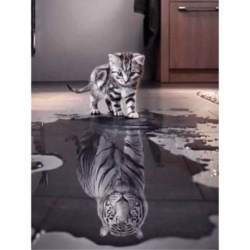 Diamanttavla Katt Med Tigerspegelbild