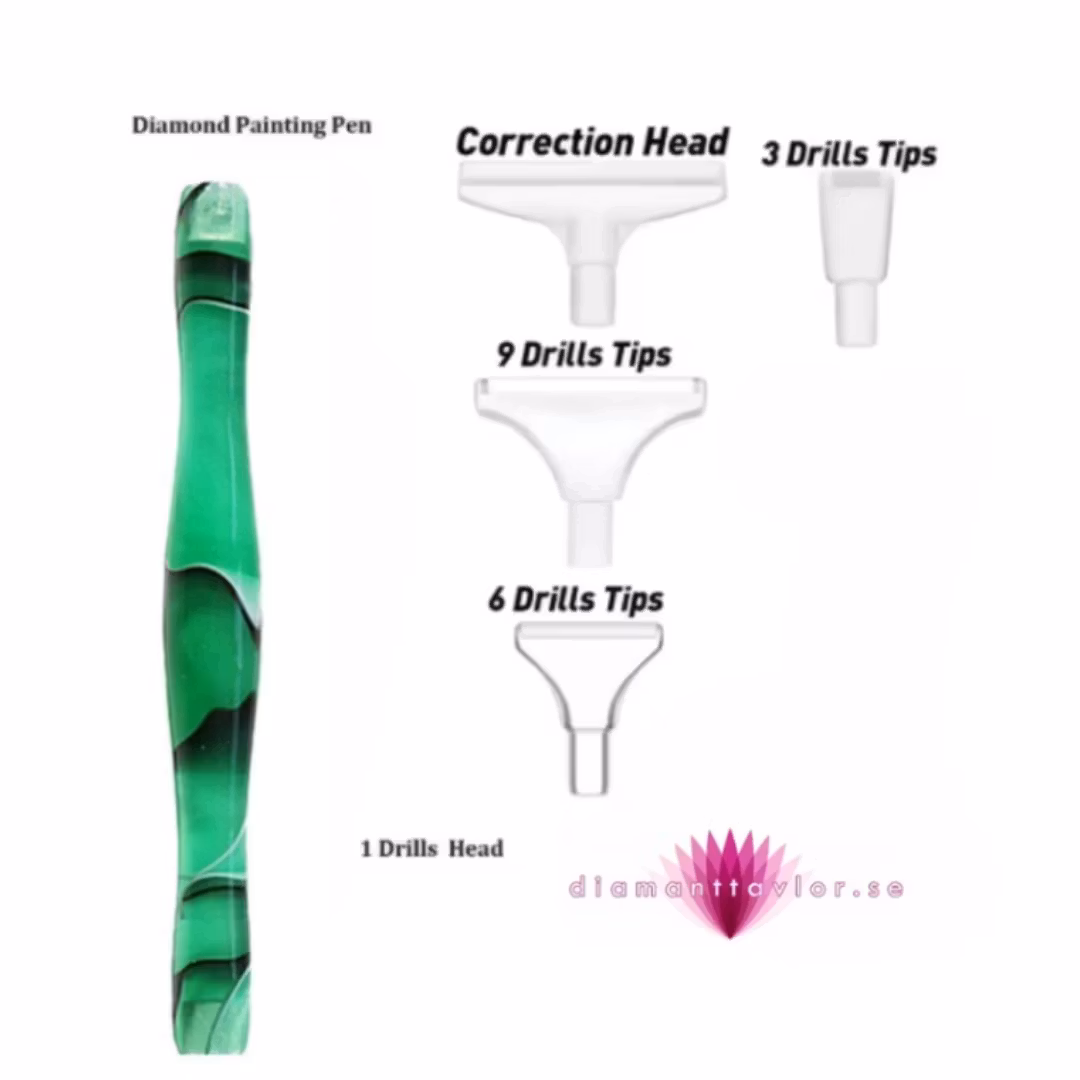 Medföljer ett antal utbytbara toppar för att plocka fler pärlor åt gången med plus topp med spatel.