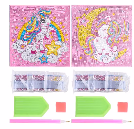 Diamanttavla (R) 2-Pack Unicorn 18x18 cm
