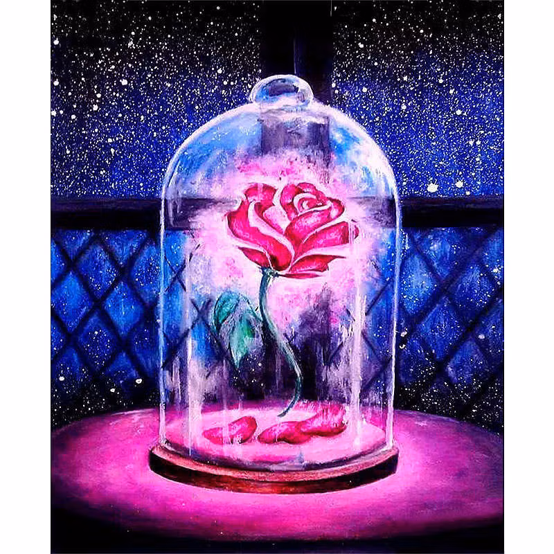 Diamanttavla Beauty And Beast Pink Rose 30x40