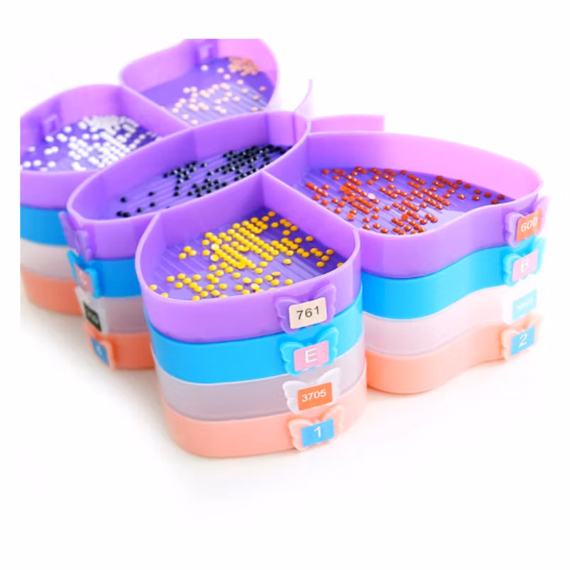 Tråget har flera fack som gör det möjligt att pärla med flera färger samtidigt.