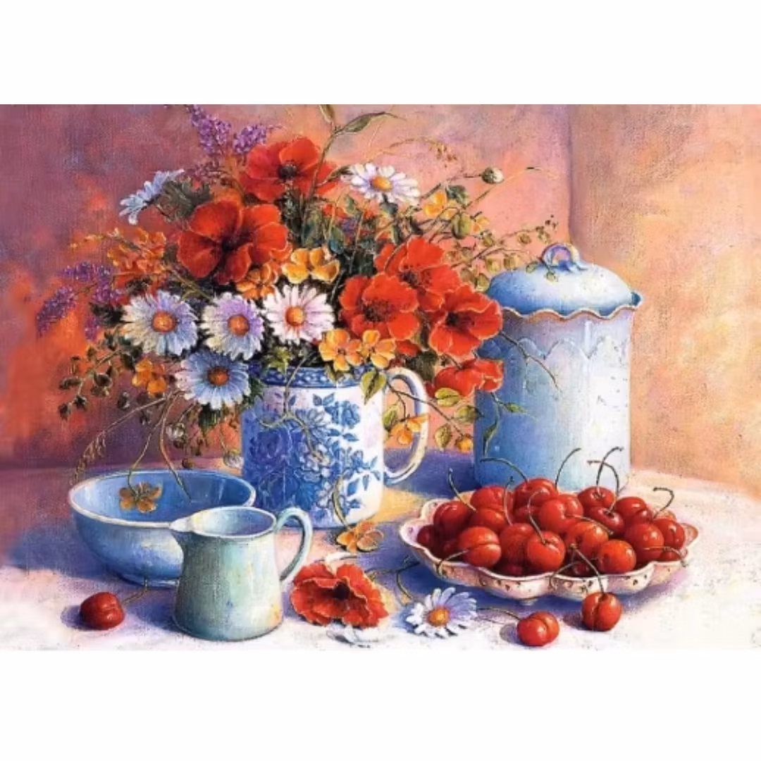 Diamanttavla Körsbär Och Vallmobukett 40x50