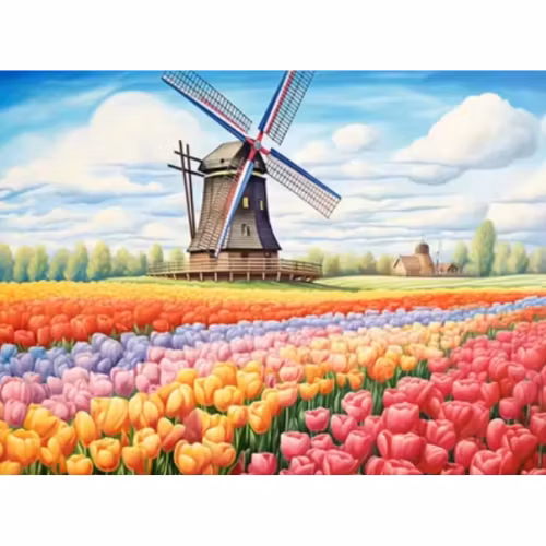 Diamanttavla Väderkvarn Tulpaner 40x50