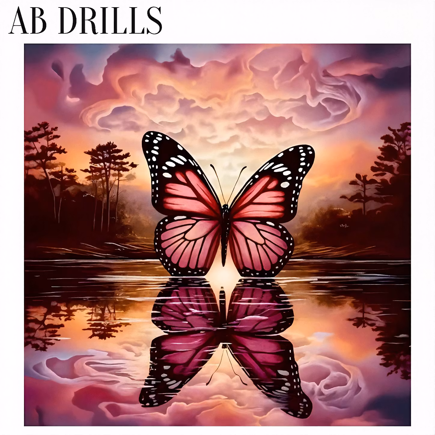 Diamanttavla AB Drills Fjäril Spegelbild 40x40 - Lev v. 26-27