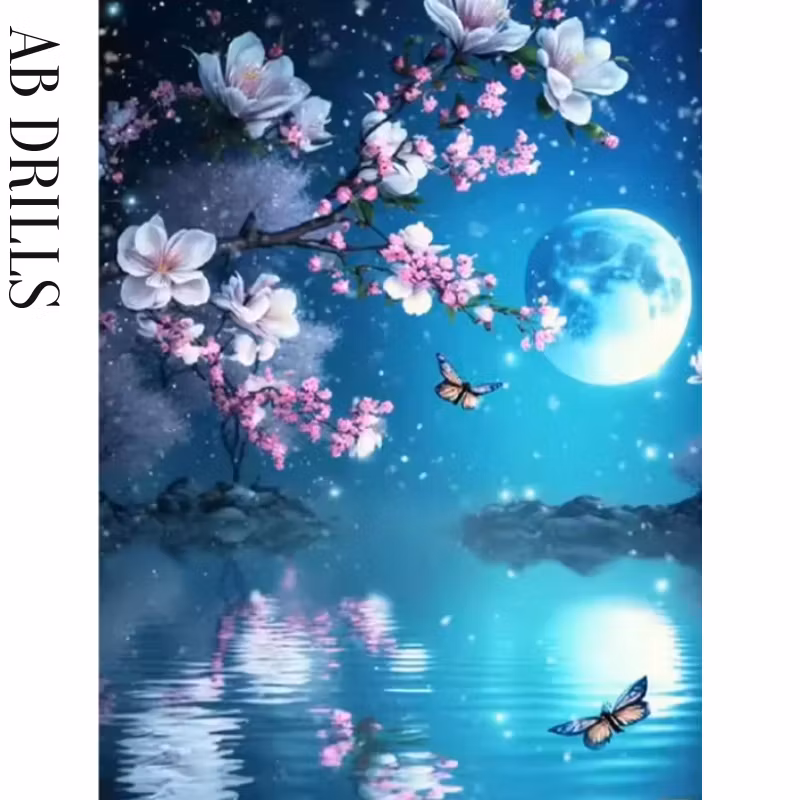Diamanttavla AB Drills Körsbärsblom Månsken