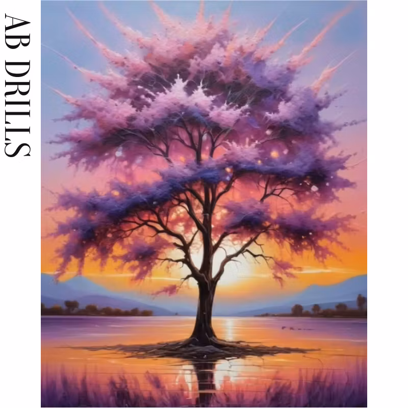 Diamanttavla AB Drills Träd Solnedgång 40x50