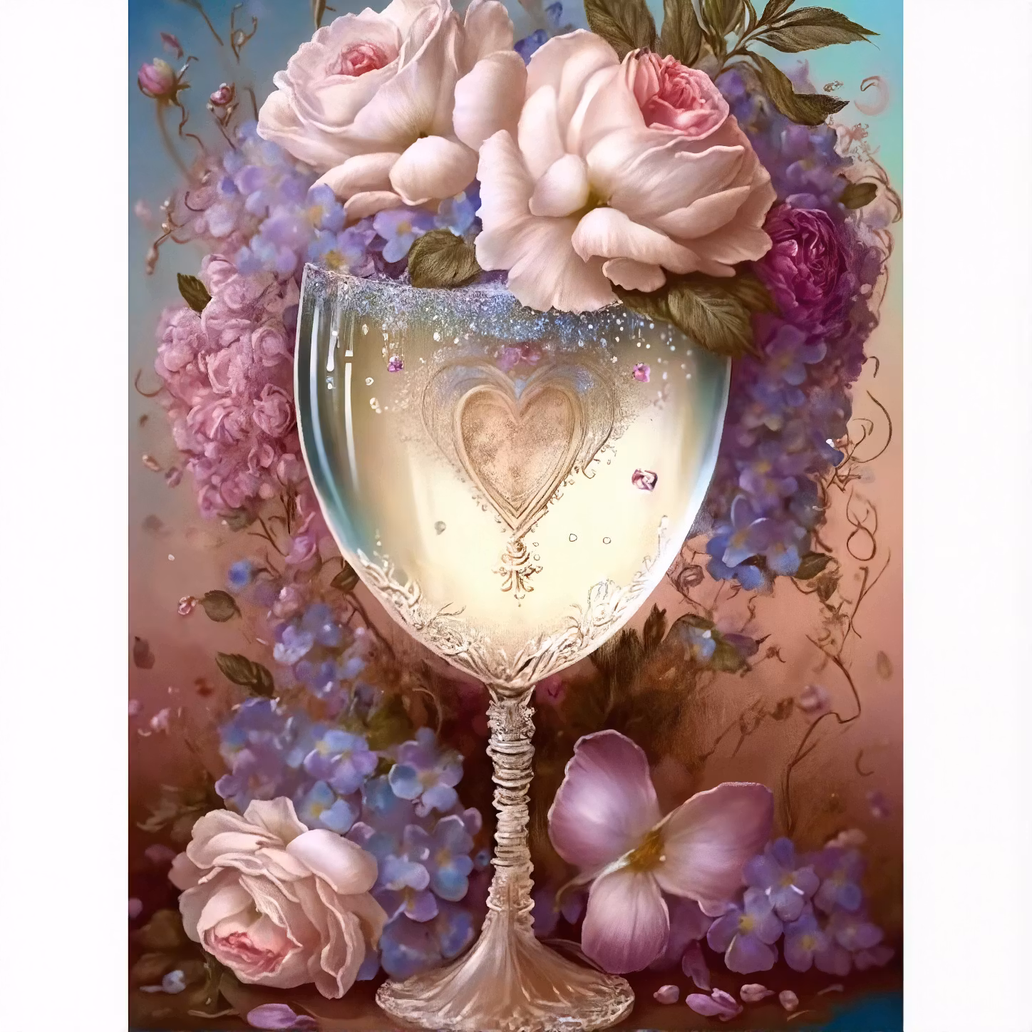 Diamanttavla Bägare Lila Och Rosa Blommor