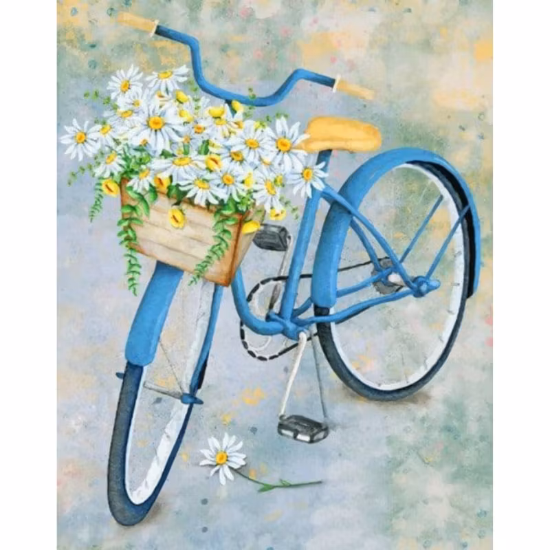 Diamanttavla Blå Cykel Med Blommor 40x50