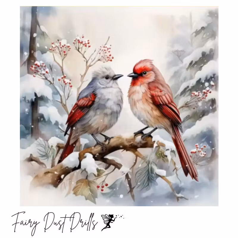 Diamanttavla Fairy Dust Drills Winter Birds 40x40