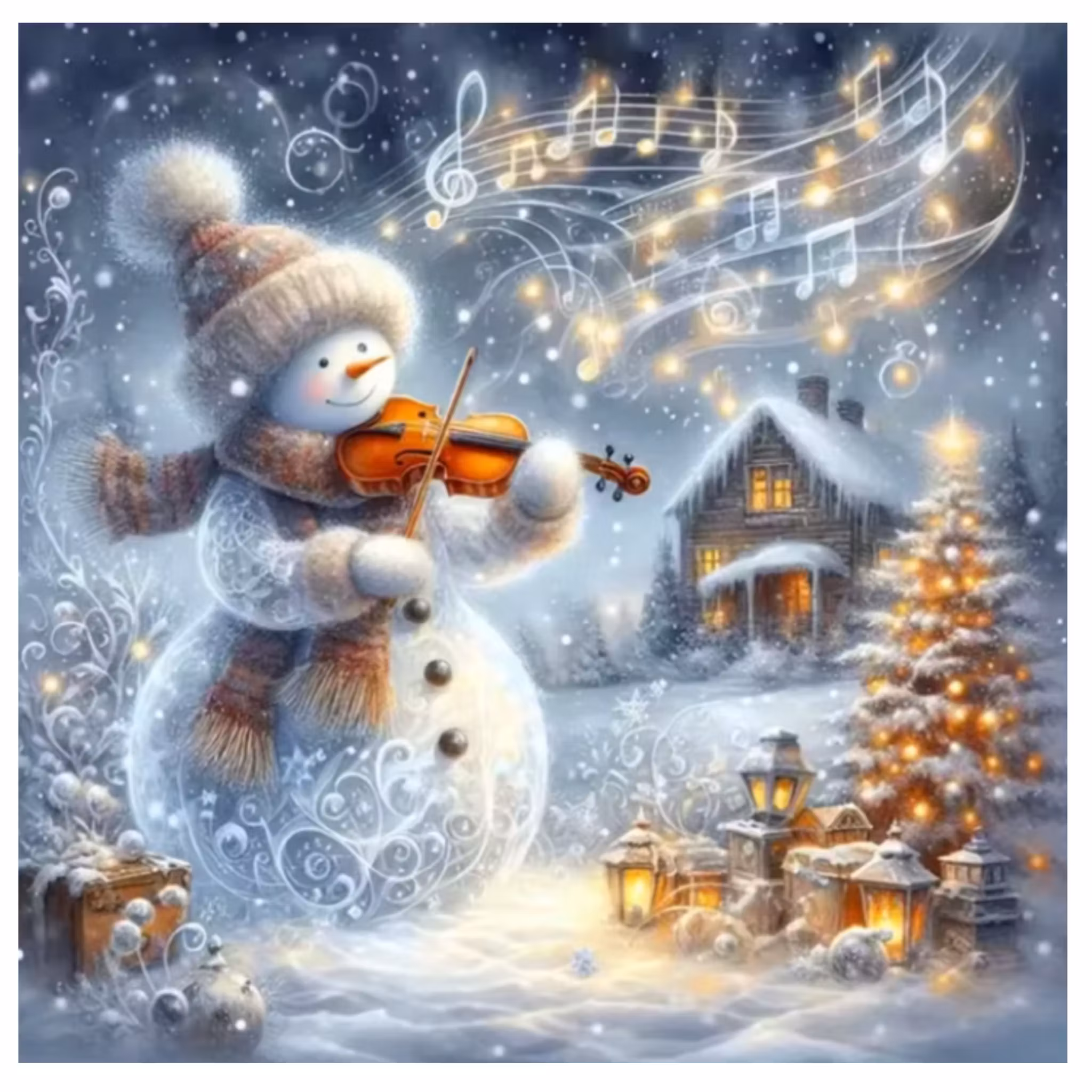 Diamanttavla Snögubbe Fiol 40x40