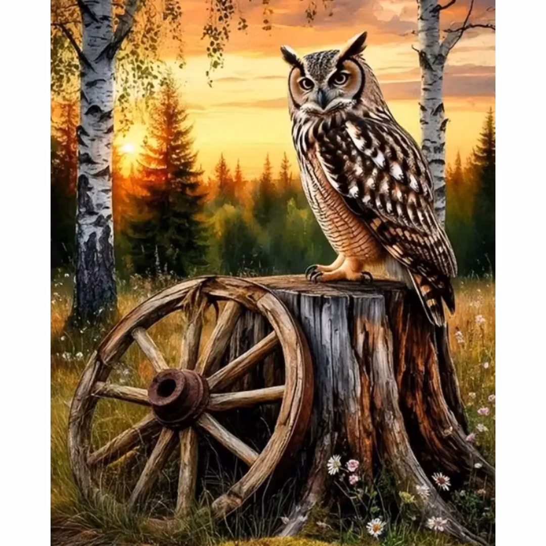 Diamanttavla Uggla På Stubbe 40x50