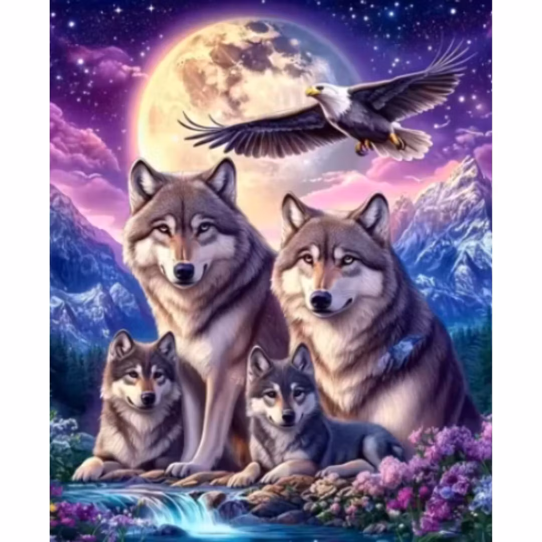 Diamanttavla Wolf Family And Eagle
