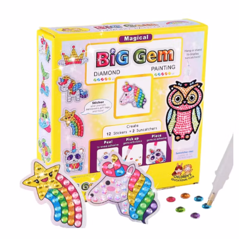 Diamond Painting 12 st Stickers "Big Gem" och 2 st Hängen ( Enhörning Och Uggla )