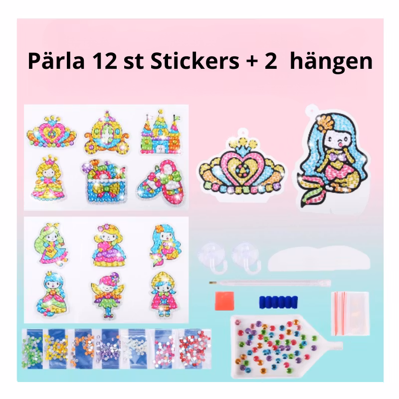 Antal: 1 st förpackning med 12 stycken stickers och 2 hängen