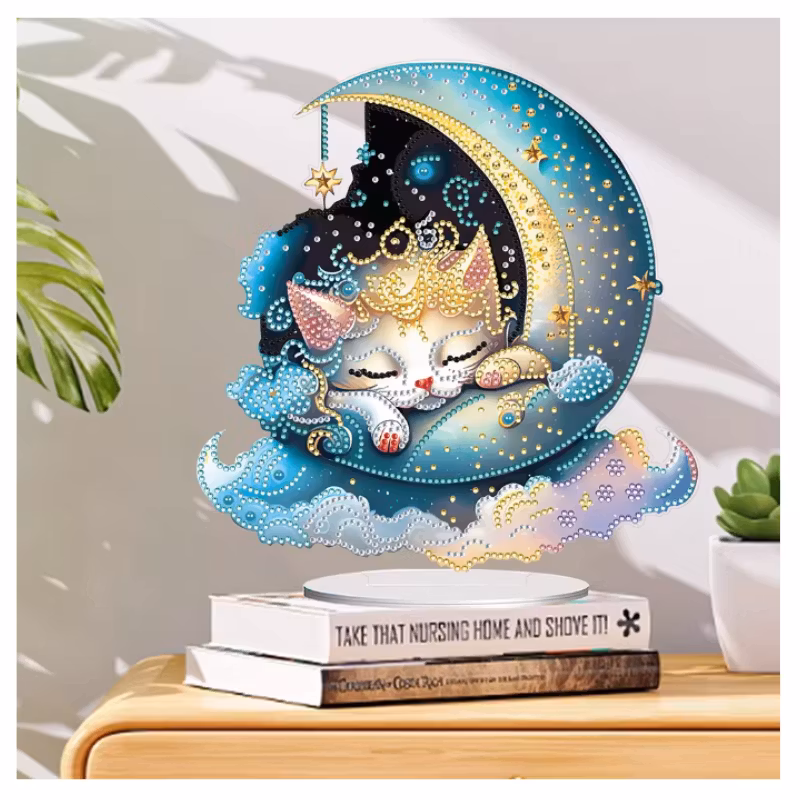 Diamond Painting Bordsdekoration Månkatt