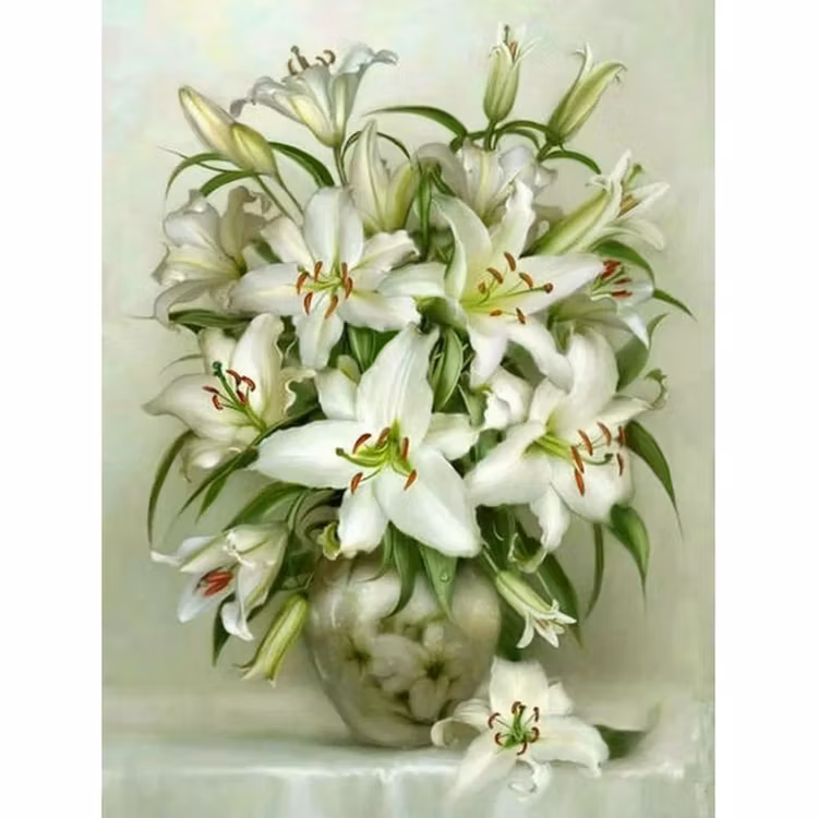 Diamanttavla (R) Vita Liljor I Vas 40x50