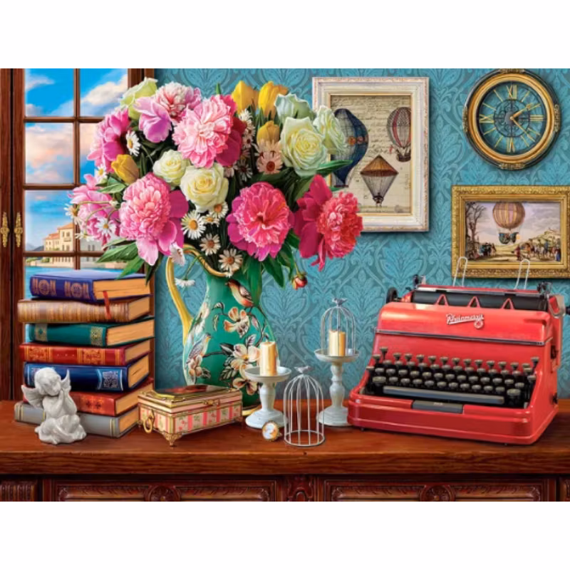 Diamanttavla Blombukett Och Skrivmaskin
