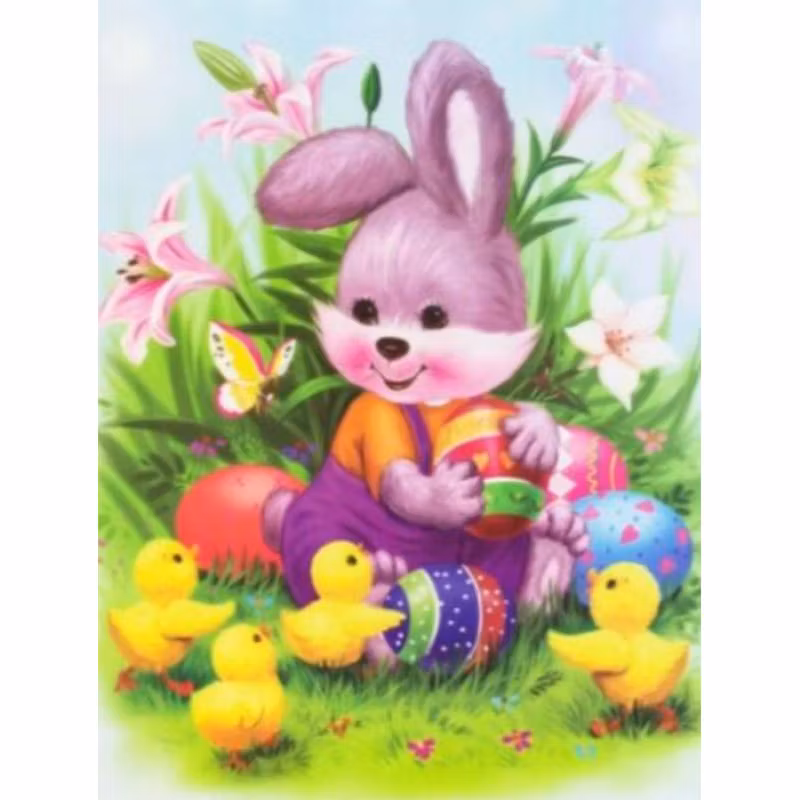 Diamanttavla Kanin Med Kycklingar 40x50 - Leveranstid 1-3 Dagar