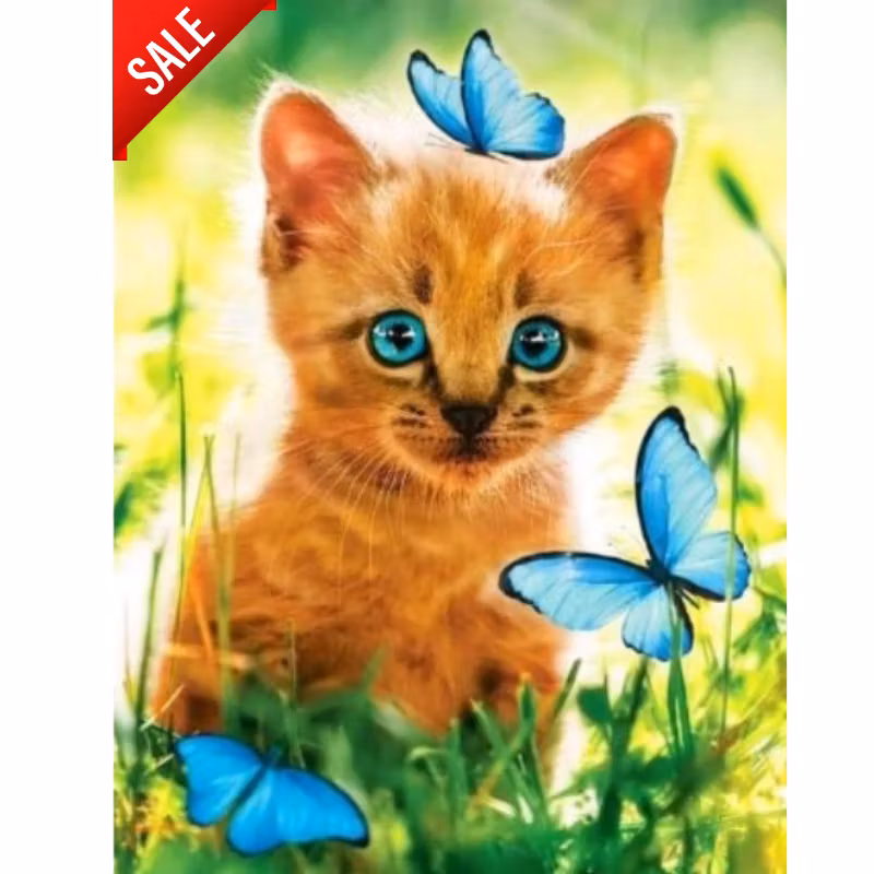 Diamanttavla Kattunge Med Fjärilar 40x50