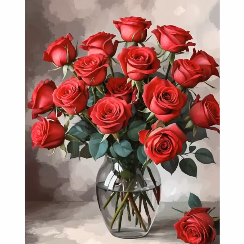 Diamanttavla Röda Rosor I Glasvas 40x50