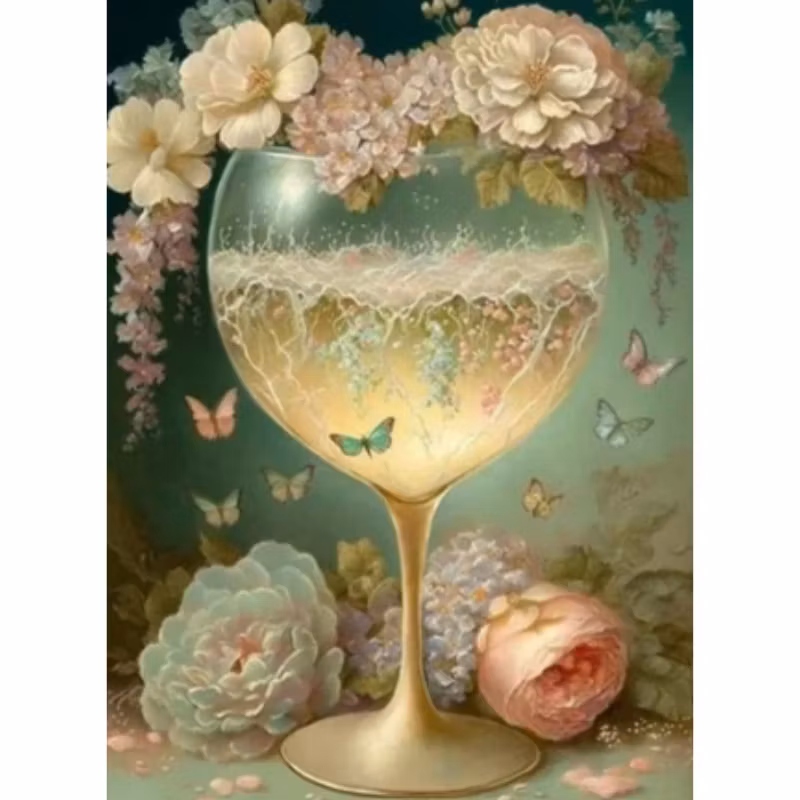 Diamanttavla Bägare Blommor Och Fjärilar 40x50