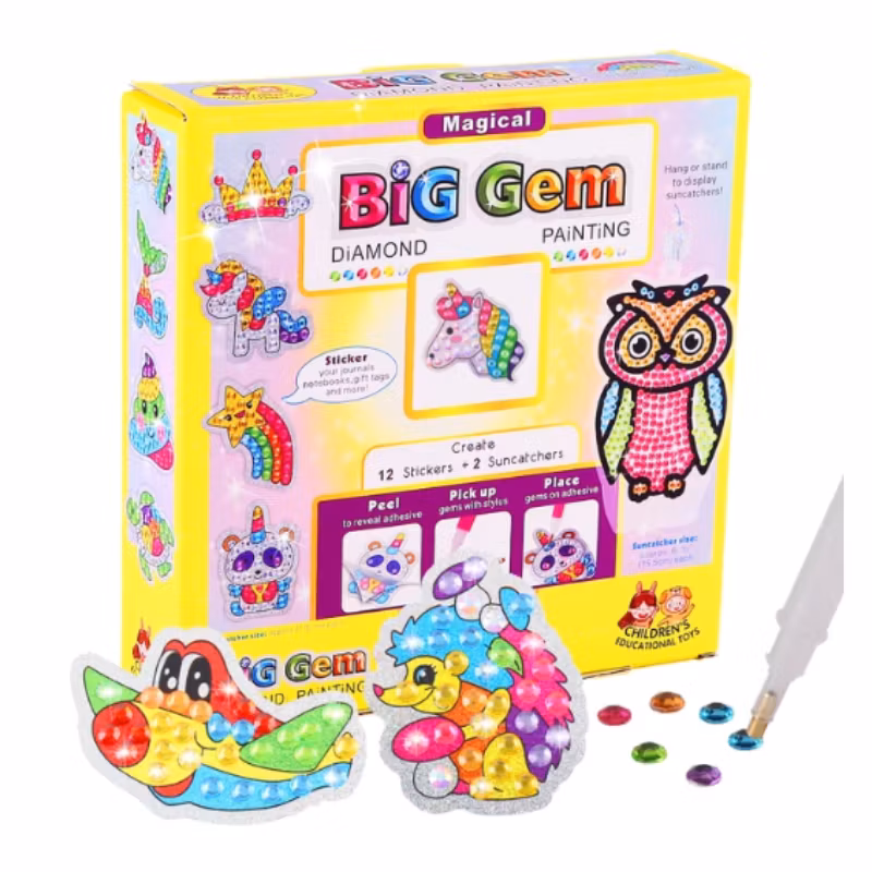 Diamond Painting 12 st Stickers "Big Gem" och 2 st Hängen ( Flygplan Och Igelkott )
