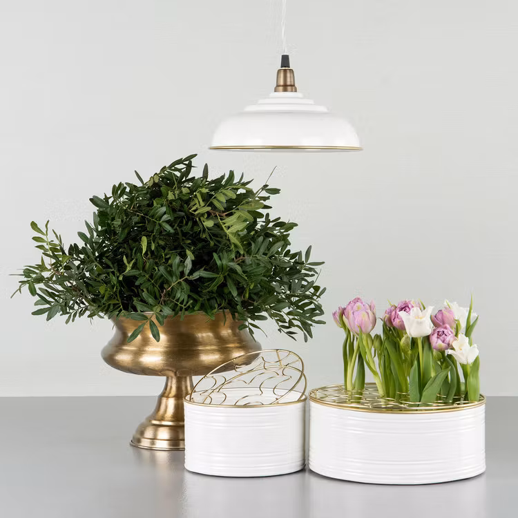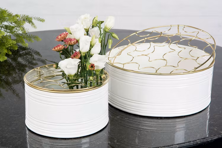 Emaljkruka/Vas Vit Guld 2-Pack