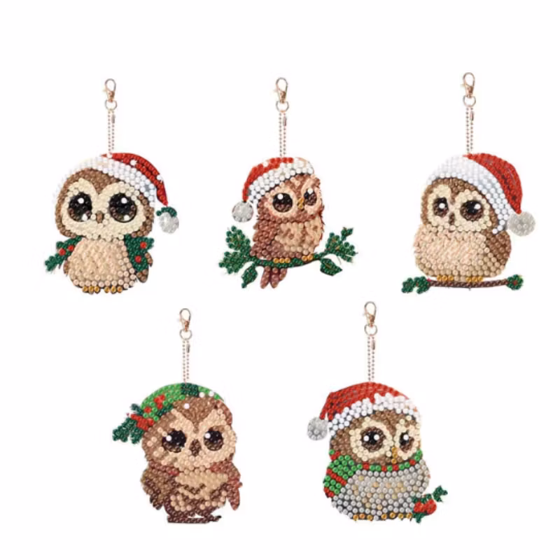 Diamond Painting Nyckelringar 5-Pack Julugglor