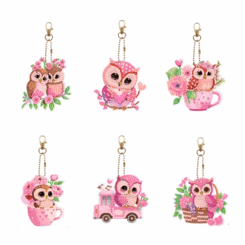 Innehåller: Färdiglimmad och tryckt nyckelring, diamanter, pärlpenna och kludd alternativt pincett samt tråg.