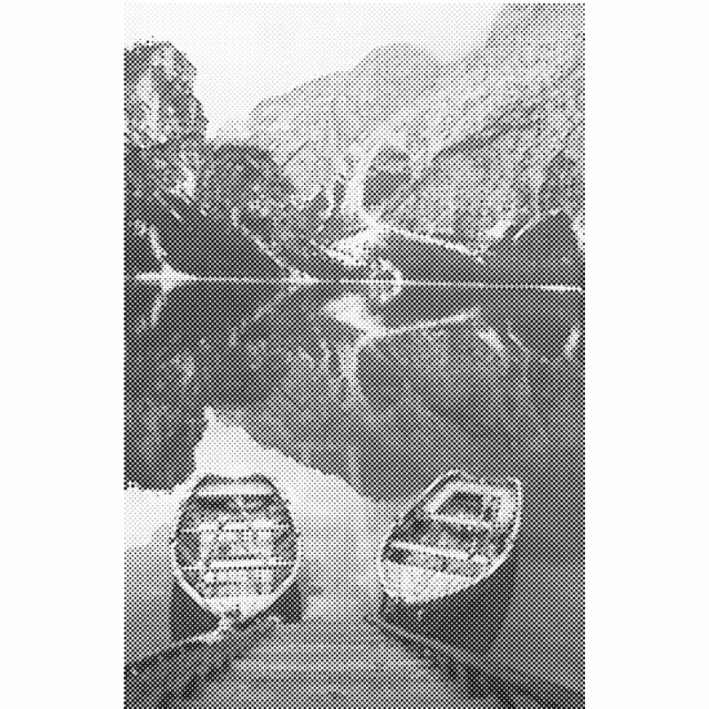 One Color Dot Painting Ekor Bergslandskap