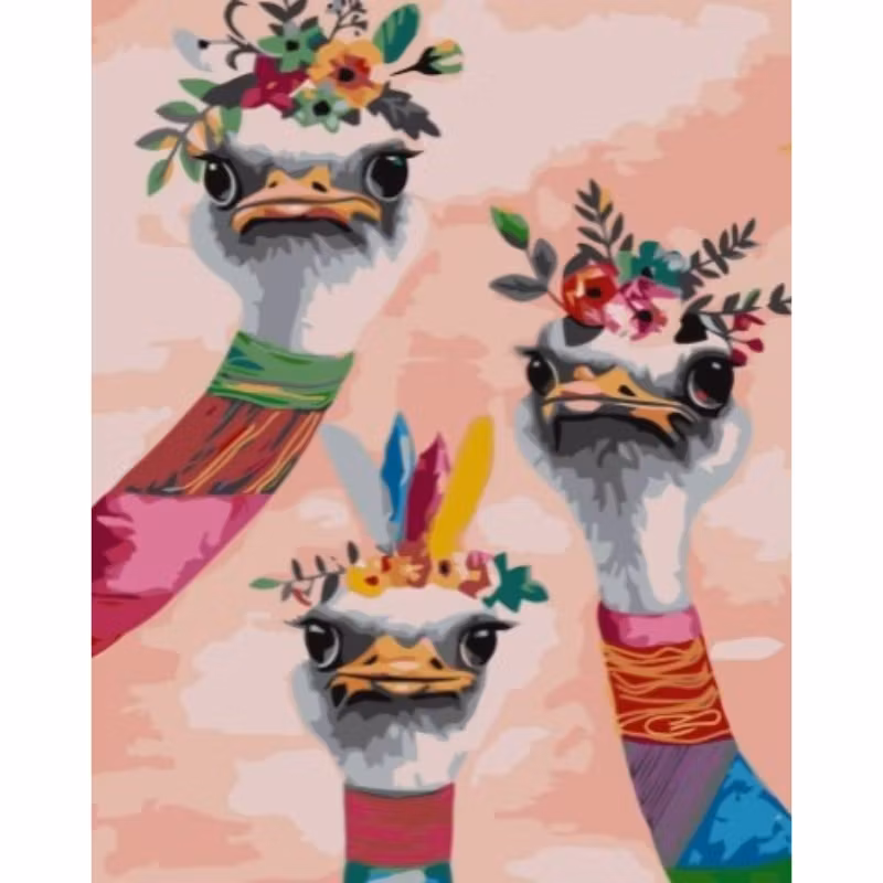 Innehåller: Förtryckt canvas med siffervisningar, numrerade akrylfärger och nylonpenslar i olika tjocklekar.