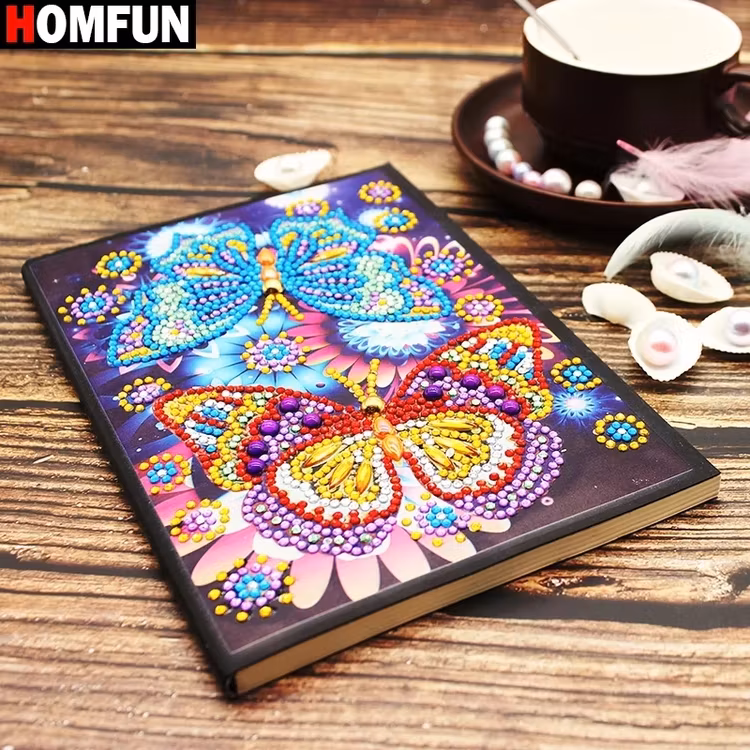 Innehåller: Förlimmad och förtryckt omslag på skrivbok, diamanter, pärlpenna och kludd alternativt pincett samt pärlplatta