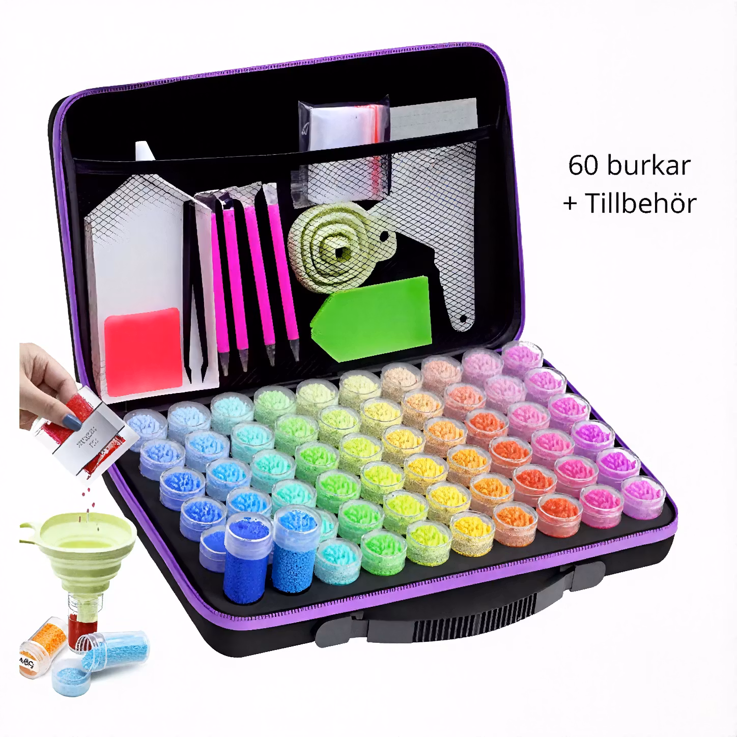 Pärlförvaring Väska Svart/Lila Med 60 Burkar Och tillbehör